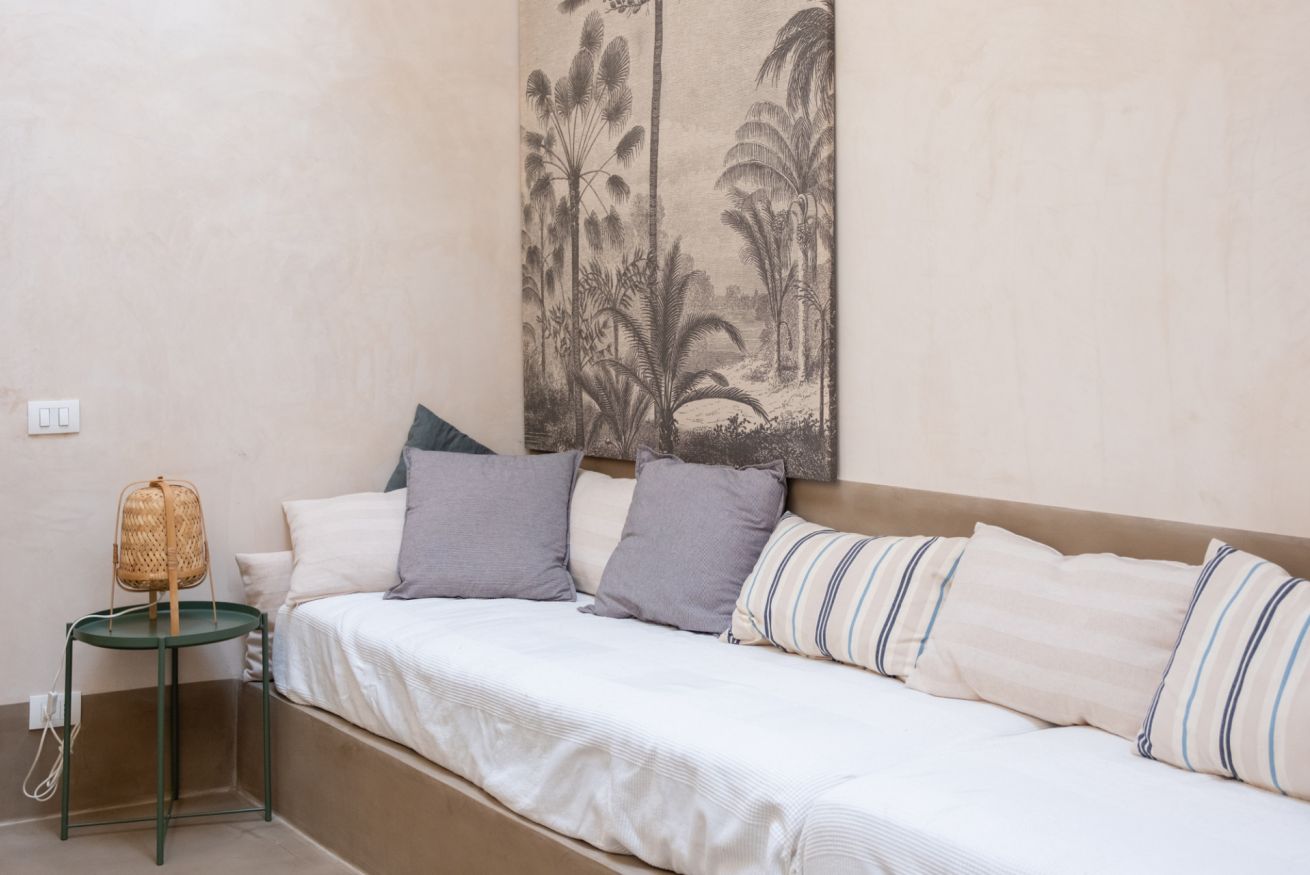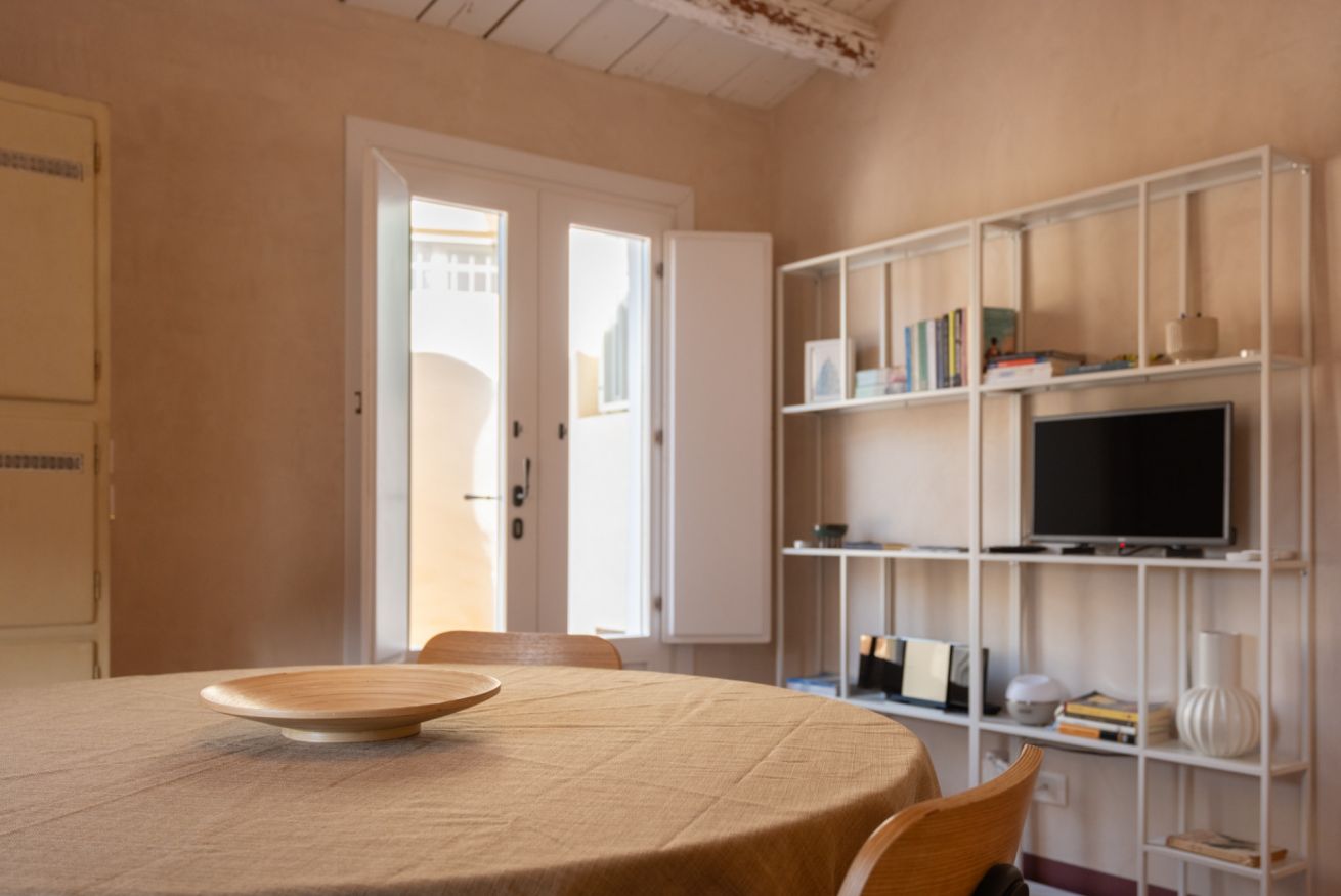 La zona living, ampia e luminosa, richiama le atmosfere siciliane con il suo design ricercato ed è il luogo perfetto per rilassarsi, dove troverai una TV 4K da 40''.