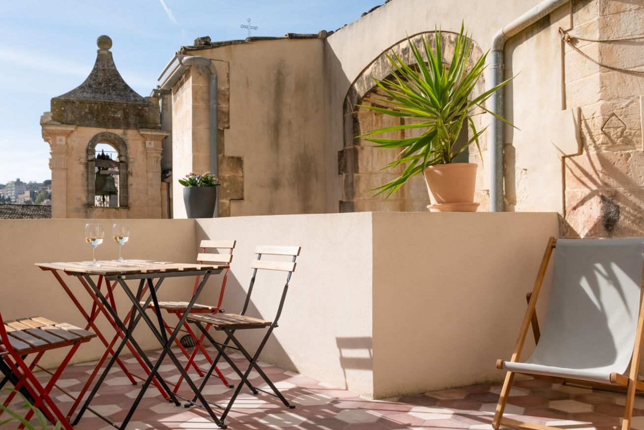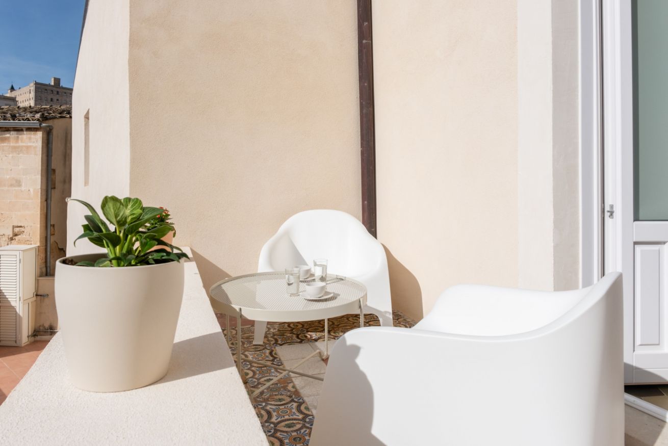 Il vero fiore all’occhiello è la terrazza, un angolo di pace sospeso sui tetti del centro storico. Uno spazio curato e tranquillo dove potrai cenare sotto le stelle, leggere un libro nel silenzio della città o semplicemente lasciarti incantare dalla vista mozzafiato.